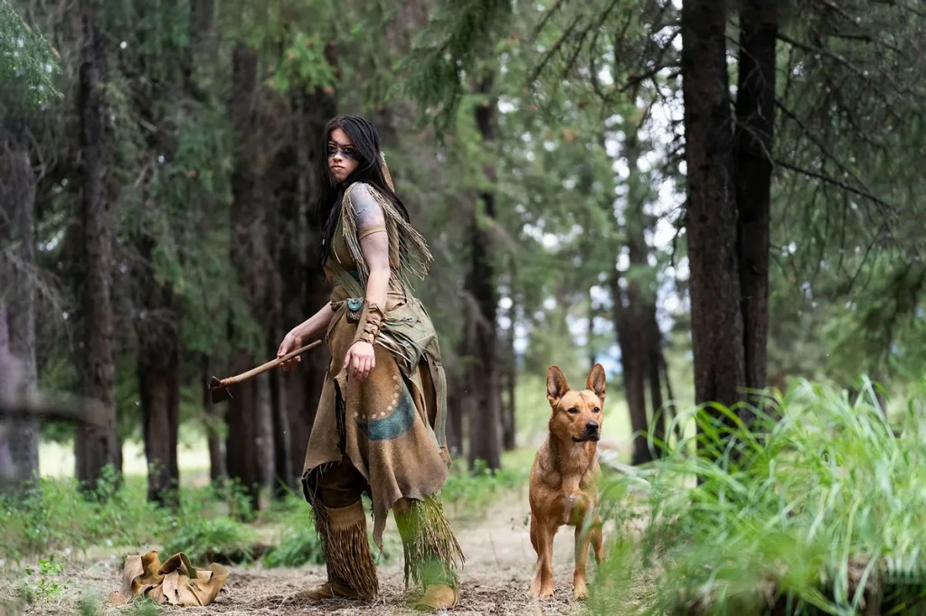 Prey starts out on a very human note, establishing its hero, her family and her day-to-day life before it shows us anything scary or otherworldly, and that’s a good approach. It’s 1719, somewhere in the mountainous regions of the Northern Great Plains. Naru is a young Comanche woman who’s been trained to be a healer by her mother Aruka (Michelle Thrush), but dreams of being a great hunter like the men in her tribe, including her brother, Taabe (Dakota Beavers). While out practicing her hunting skills with her loyal dog Sarii, Naru witnesses the ominous arrival of the alien hunter’s spaceship, which she interprets as a Thunderbird — a sign she’s on the right path as a hunter.