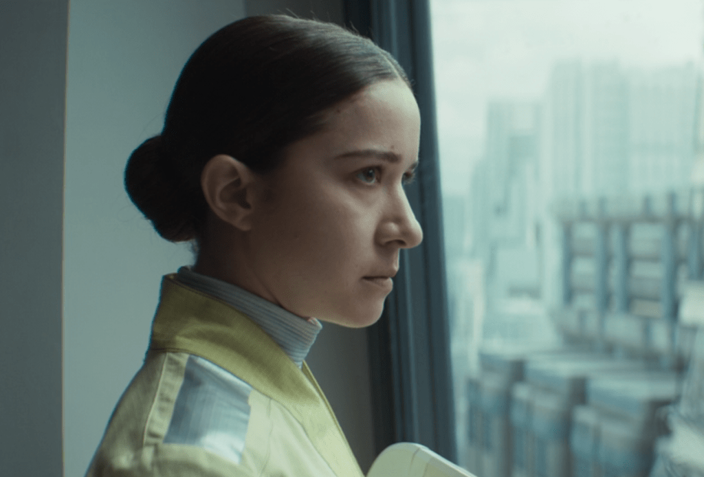 It’s too much for me to get into a lot of detail about the costumes, but I love so many of Wilkinson’s choices, such as the way the soft yellow hospital scrubs contrast with the brutalist grey concrete and drab institutional interiors…