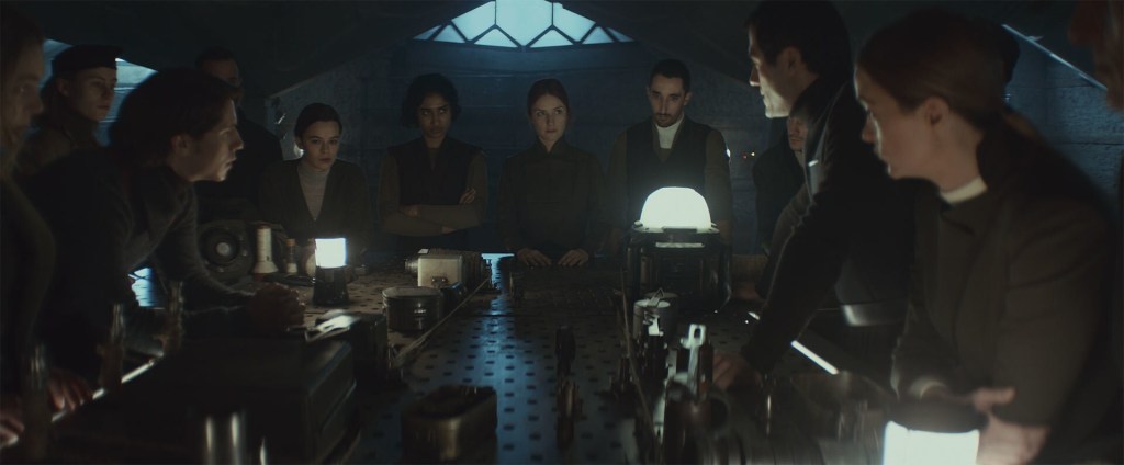 For example, the headquarters of the Ghorman resistance was conceived and designed by Gilroy and Hull to be the basement of a textile factory, with spinning machinery in the background and a workbench used as a conference table. It’s never mentioned in the screenplay, and few viewers will consciously make the connection, but it grounds the story.