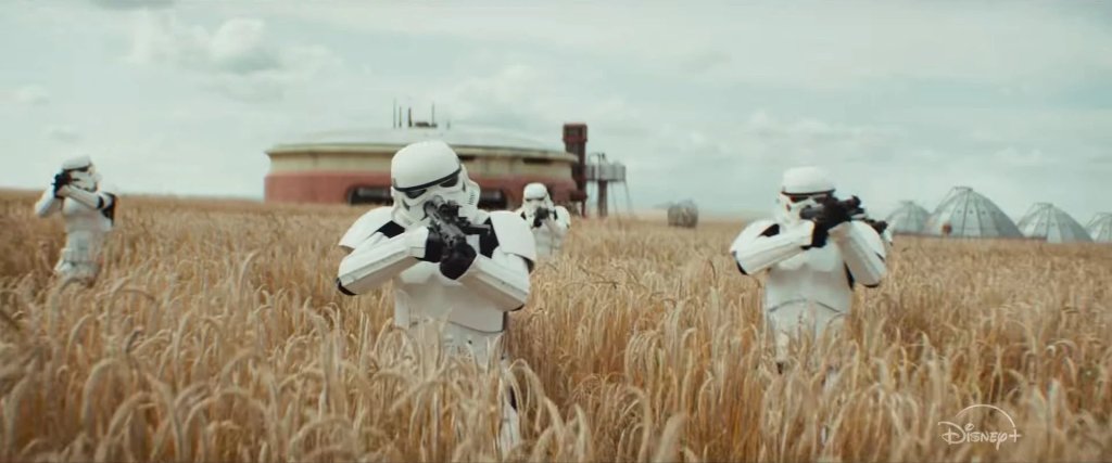 There’s a richness to all the settings wherever the story takes us — for example the gorgeous wheat fields on Mina-Rau that make every shot look like Days of Heaven or an Andrew Wyeth painting. Star Wars has never looked this good. In that sense it can and should be counted as cinema, not just TV.