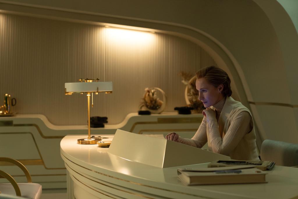 Michael Wilkinson’s costume designs integrate into Hull’s visual scheme so well, managing to seem both practical and fabulous at the same time, exactly the fine line you want in an epic space adventure that’s so relevant to our world.